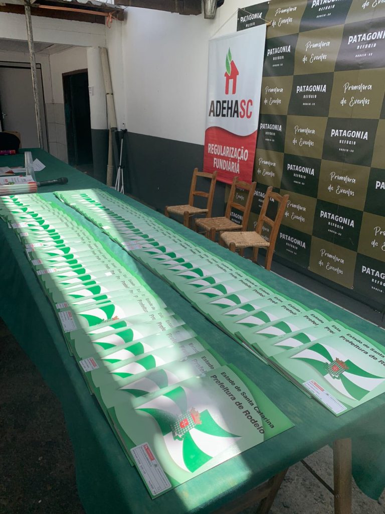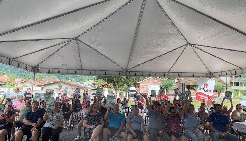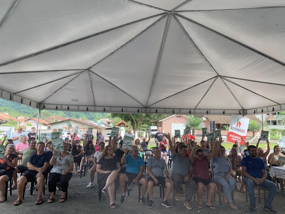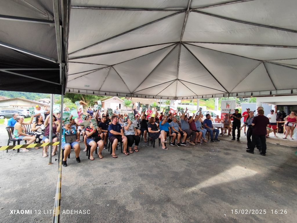 A ADEHASC, em parceria com a Prefeitura de Rodeio/SC, entregou no último sábado, dia 17/02/2025, os títulos de propriedade às famílias do Núcleo Divisa, por meio do programa de Regularização Fundiária Urbana (REURB).